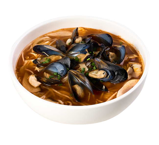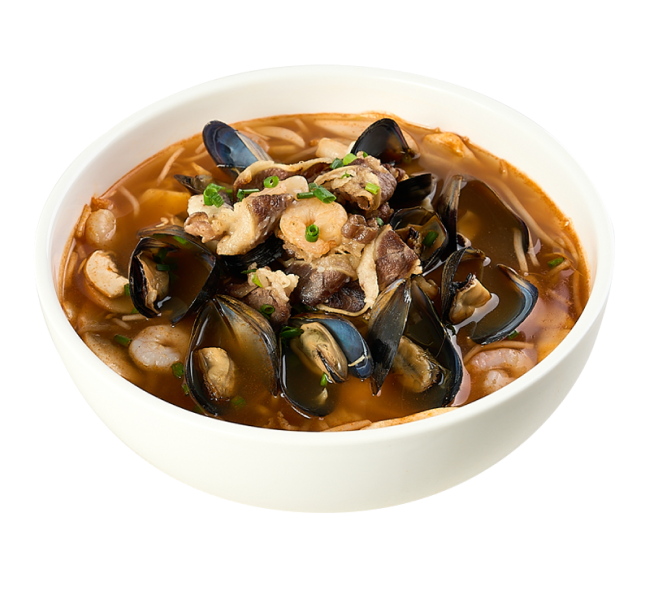 홍합, 소고기, 새우가 들어간 푸짐하고 매운 쌀국수