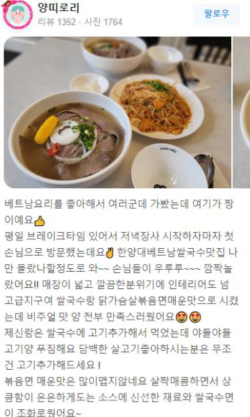 베트남 현지의 맛을 유지하면서 한국인의 입맛에 맞춘