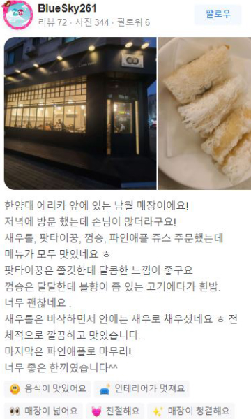 베트남 현지의 맛을 유지하면서 한국인의 입맛에 맞춘 다양한 음식을 경험할 수 있습니다.